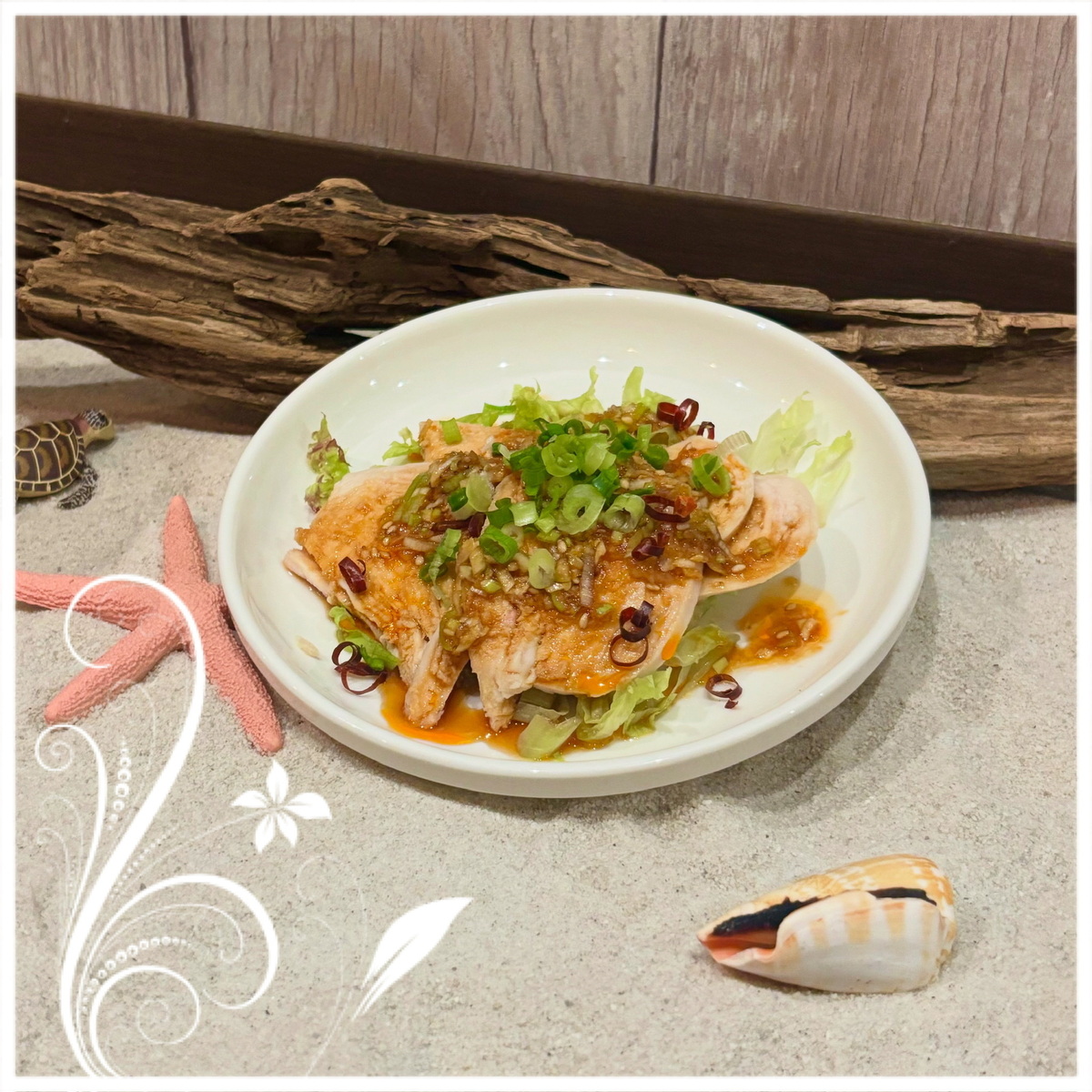 自家製の鶏ハムで、お野菜と香味ソースを包んで食べるのがオススメです✌️