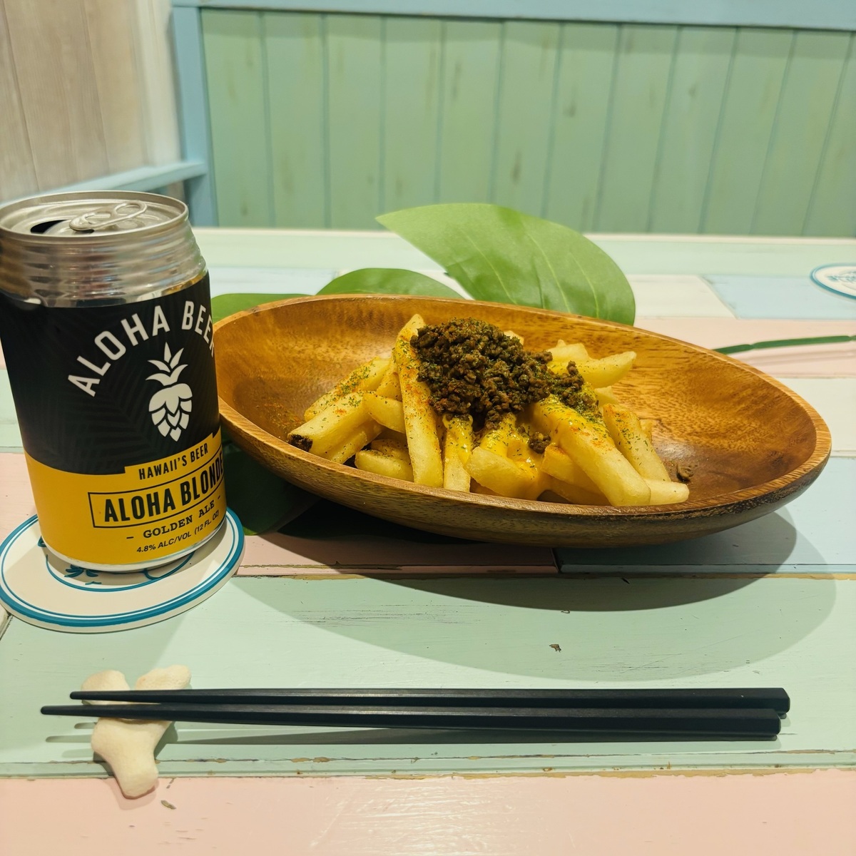 チェダーチーズソースとチリミートが当店のおすすめポテトによく絡まって食べ応え抜群です🍟